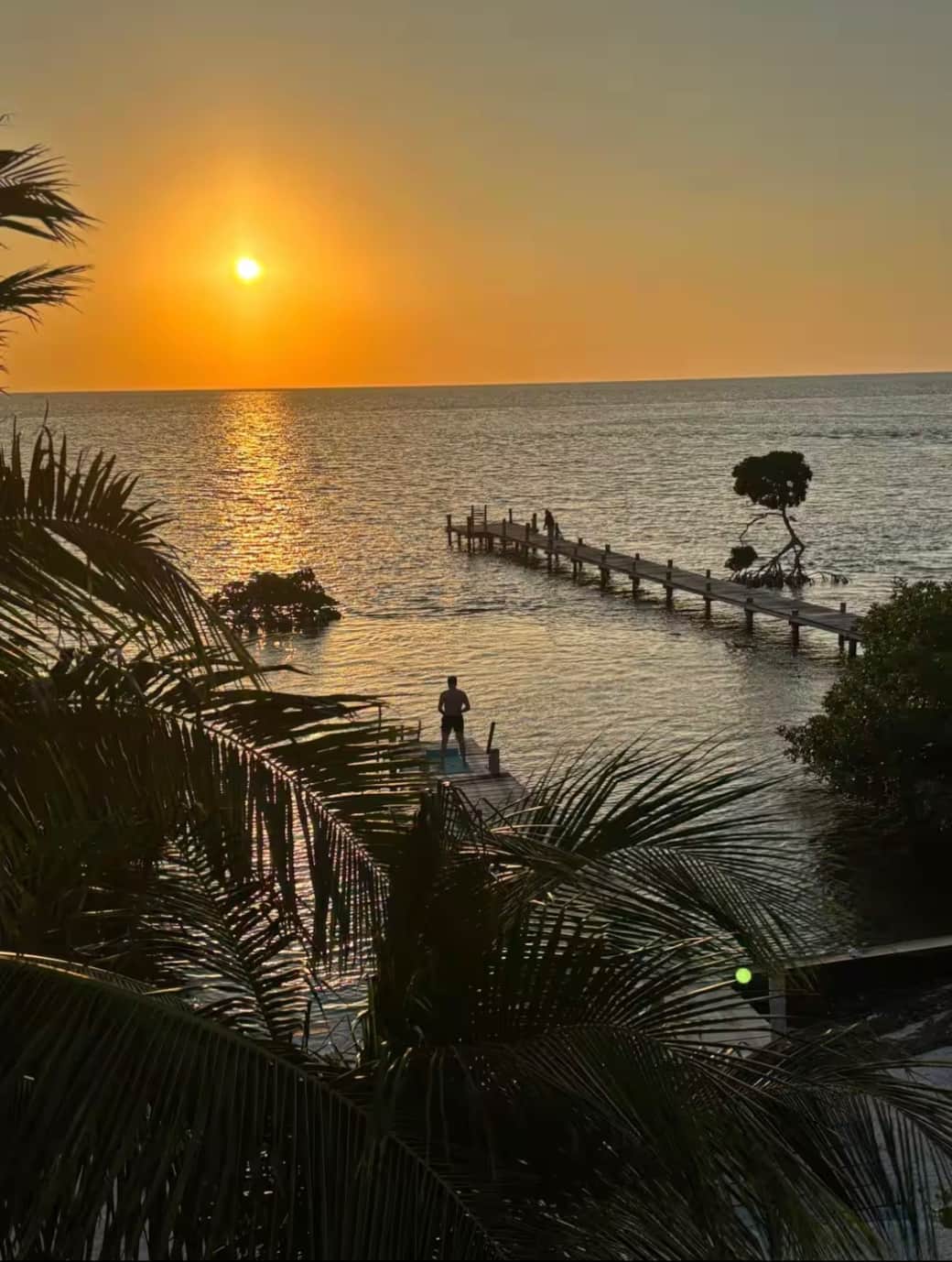 The island is quite picturesque with the blue green waters of the Caribbean Sea, shallow water to swim, and beautiful sunrises and sunsets.