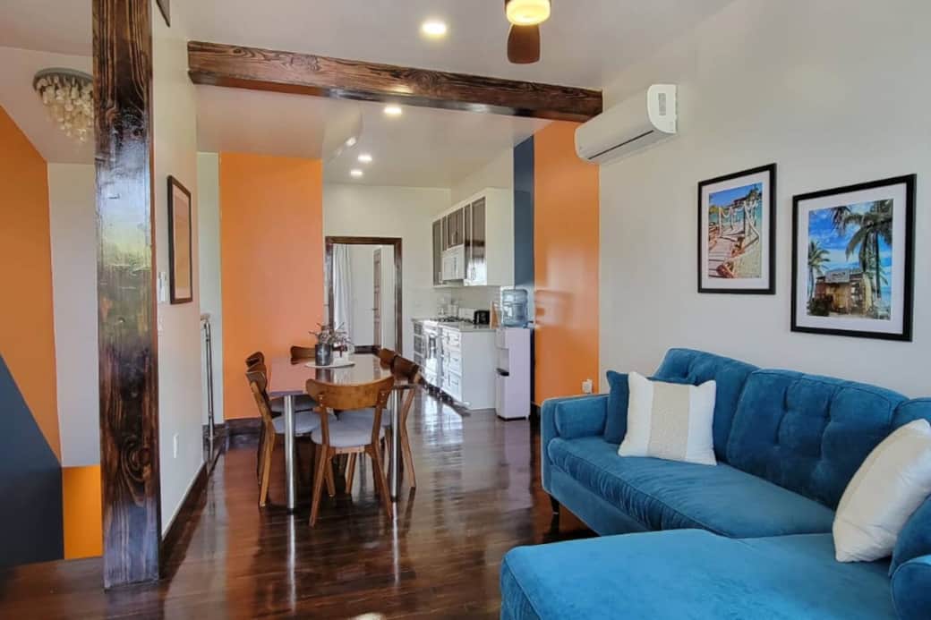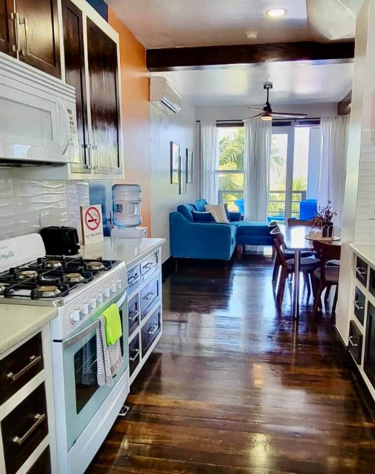 Unwind at 360 Suites – Seaside One-Bedroom, perfect for families, couples and friends. Sleeps 2-4 with 1 king bed and 1 queen pullout sofa. Enjoy A/C, smart TV, a fully equipped kitchen, and complimentary kayaks shared with other units. Located on the peaceful Northside of Caye Caulker, just a 2-minute ride from the famous split followed by another 2 minute walk to the property. A tranquil spot with easy access to everything the island offers! Welcome to 360 Suites – Suite B, a peaceful one-bedroom seaside retreat located on the tranquil northside of Caye Caulker. Just a short 2-minute ferry ride from the iconic Split, followed by a quick 2-minute walk, this serene getaway offers easy access and a quiet, relaxed atmosphere. The ferry ride itself is a charming experience, gliding across the turquoise waters with breathtaking ocean views. Suite B is located on the first floor and comfortably accommodates 2 to 4 guests, featuring a king-size bed in the bedroom and a queen-size pullout couch in the living room—perfect for extra guests. The suite is tastefully designed with warm, coastal décor and boasts stunning views throughout. The bedroom includes a private ensuite bathroom equipped with a tub and a shower, featuring hot and cold water and adjustable settings for a soothing bath experience. A glass door leads from the bedroom to a small private patio, offering lovely views of the westside ocean, lush garden, and quiet street. The spacious kitchen is fully stocked with utensils and cookware—ideal for preparing home-cooked meals. In the living room, you'll find a comfortable couch to relax on after a day of exploring, along with a Smart TV for your entertainment. The pullout couch provides an additional sleeping option for guests. Guests of 360 Suites have access to four complimentary double-seater kayaks, shared among all units—perfect for discovering the calm waters surrounding the island. The property also features a peaceful backyard, complete with hammocks, a picnic table, and an outdoor shower for rinsing off after a day in the sun. There is a private beach area and a dock for fishing, but please note that swimming is not advised here due to occasional crocodile sightings. Excellent swimming spots are available nearby on both the northside and southside of the island. Relax and unwind on the spacious decks, furnished with comfortable chairs where you can soak up the sun, enjoy the gentle sea breeze, and take in the views of the surrounding paradise. In one of the photos, you’ll notice a secure partition door that separates the two one-bedroom units. This door is safely locked on both sides to ensure privacy when units are booked separately. However, if you're traveling with family or friends, you have the option to book both units together and open the partition, seamlessly converting the space into a two-bedroom layout for added comfort and convenience. Each of the one-bedroom units also features two private entrances—one from the front of the building and another from the back—offering flexible and easy access to your accommodations. For additional information, 360 Suites is one building with three separate units. If you're traveling with a larger group, you have the option to combine this suite with the additional one-bedroom unit and the four-bedroom penthouse upstairs—accommodating up to 20 guests. Inquire for more details if you're planning a group stay. Don’t miss the chance to experience this peaceful paradise—360 Suites is the perfect island escape, and we’d love to share it with you. All guests of 360 Suites enjoy access to a peaceful backyard retreat, perfect for relaxing and unwinding. The area features comfortable hammocks—ideal for enjoying a quiet moment with a book or a glass of wine while the island breeze passes through. You'll also find an outdoor shower, a picnic table for casual meals, and a private beach area furnished with beach chairs, perfect for soaking in the ocean views. Guests are welcome to fish off the dock, but please note: swimming is not allowed in this area due to occasional crocodile sightings in Caye Caulker. For swimming, we recommend the South Split, which is easily accessible and offers a safe, enjoyable beach experience. For adventure lovers, we provide four complimentary double-seater kayaks, shared among the units—perfect for a day of exploring the island by sea. 360 Suites is proudly managed by a dedicated and experienced property management team based right here in Caye Caulker. They oversee all aspects of the property and will be your primary point of contact throughout your stay. Contact details will be provided in your booking confirmation email. For the quickest response, we recommend reaching out via call or message. We take pride in offering personalized guest interaction and are always here to support you throughout your stay. Whether you prefer a hands-on experience or a more private retreat, we follow your lead. Our team is available whenever you need us, ensuring your time at 360 Suites is not just comfortable—but truly memorable. Peace, quiet and safe neighborhood. A convenient store is right across the street from the property. Just two minutes walking to Spilt to Spilt to go back and forth between the two islands. Property Layout: 360 Suites is one building with three completely private units. Two of the one-bedroom units are located on the first floor and are accessible by stairs. Personalized Check-In: We do not offer self-check-in. We personally meet all guests at the property to provide a warm welcome and orientation. As we do not have a physical office, it’s important that guests share their estimated arrival time in advance to ensure a smooth check-in. Arrival Time Required: Please inform us of your expected arrival time prior to travel. If you’re unsure, just reach out using the contact details provided in your confirmation email. Drinking Water: We provide complimentary drinking water 